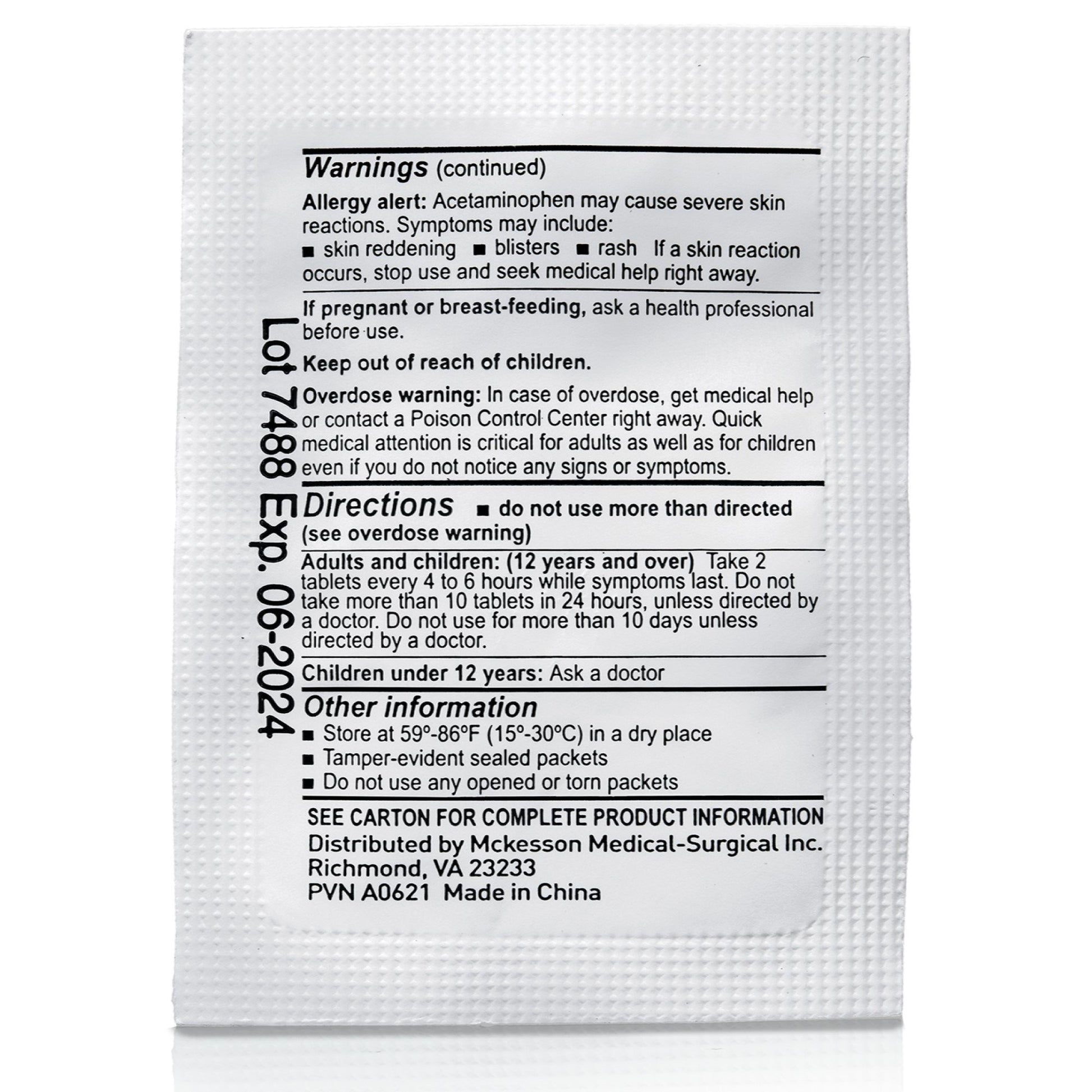 - 325 milligrams of acetaminophen per tablet